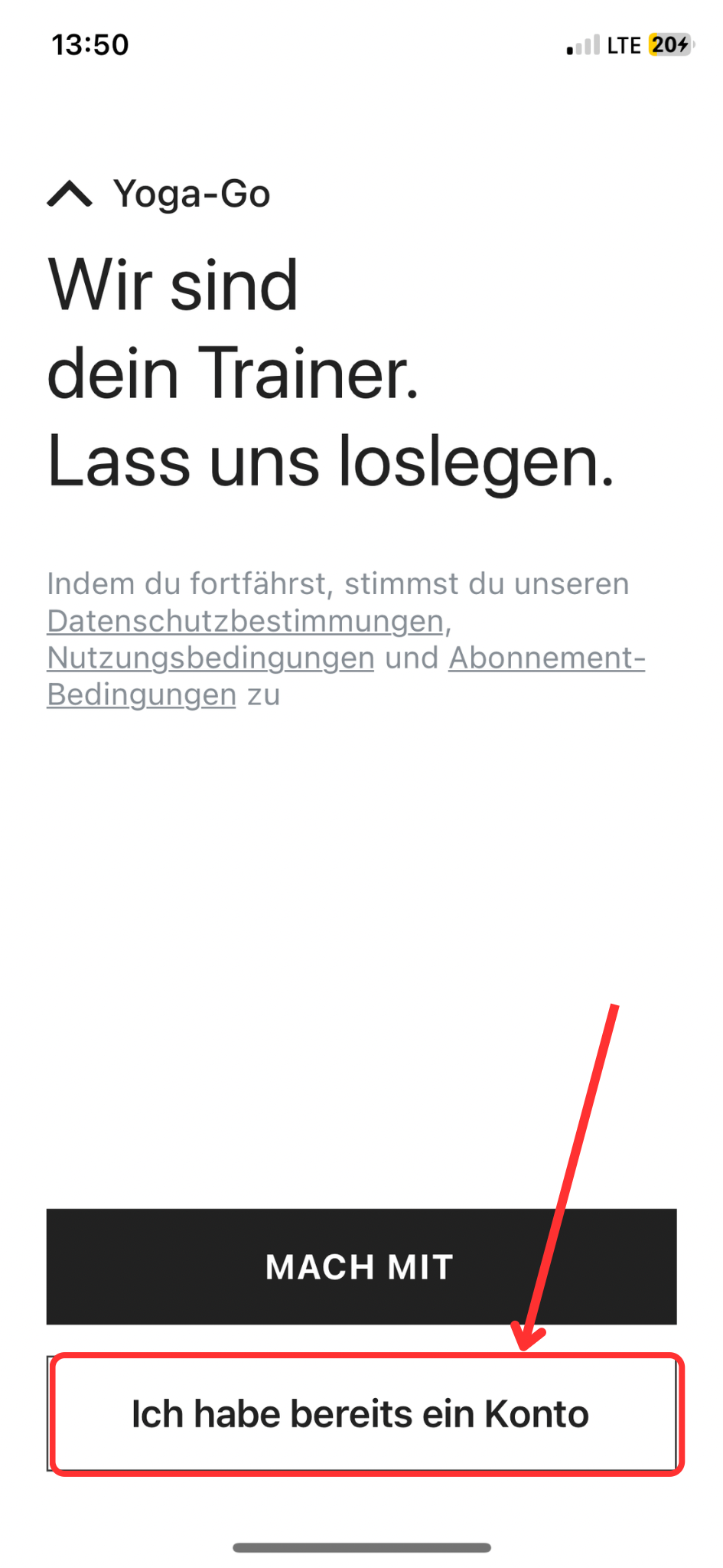 3. Öffnen Sie die App und klicken Sie auf dem ersten Bildschirm auf die Schaltfläche “Anmelden/Ich habe bereits ein Konto”.