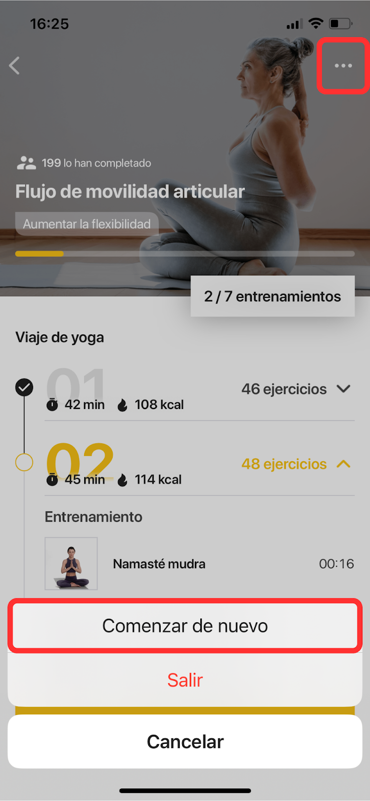Actualmente la app no ofrece la opción de repetir un entrenamiento concreto, pero tenemos una alternativa que puede ser útil: