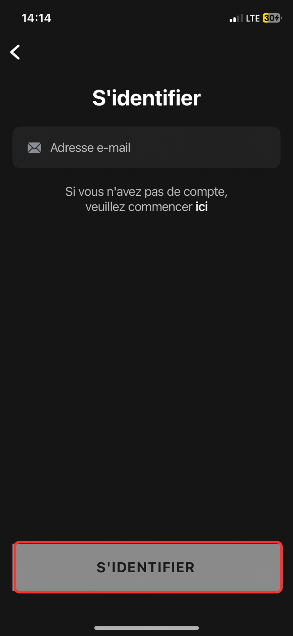 2. Ouvrez l'application et appuyez sur le bouton “J'ai déjà un compte” sur le premier écran de l'application.