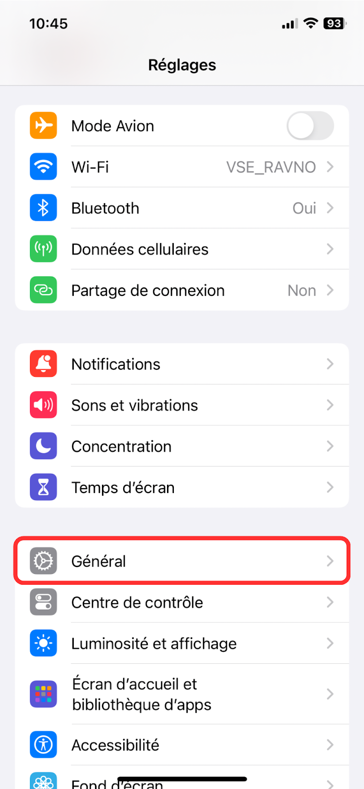 Scrollez jusqu'aux paramètres “Général”.