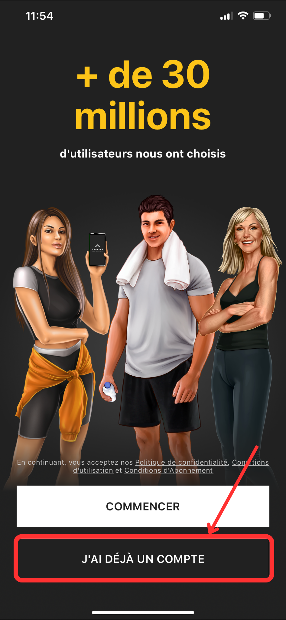 2. Ouvrez l'application et appuyez sur le bouton “J'ai déjà un compte” sur le premier écran de l'application.