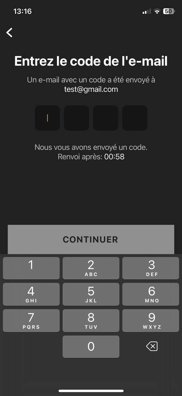 ! Si vous ne recevez pas d'e-mail avec un code de sécurité, veuillez vérifier que l'adresse e-mail que vous avez saisie est correcte. Si des filtres anti-spam sont activés dans vos paramètres de messagerie, assurez-vous également de vérifier votre dossier spam.