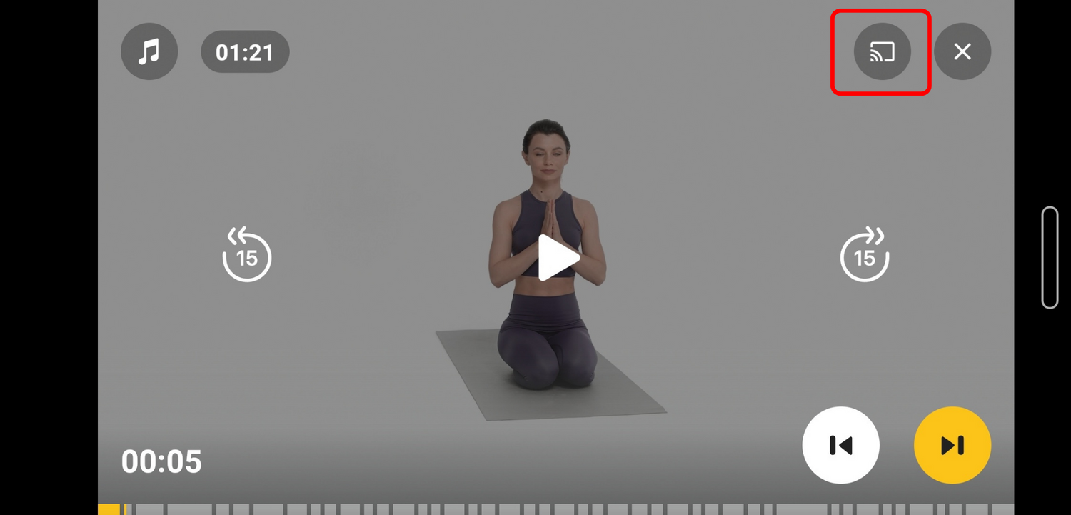 Nous avons récemment mis à jour notre application en ajoutant une nouvelle fonctionnalité qui vous permet d'afficher l'écran de votre téléphone ou de votre tablette sur votre télévision. Cette fonctionnalité vous permet de profiter au mieux de la pratique du yoga et offre plus de liberté pour effectuer une grande variété d'entraînements.