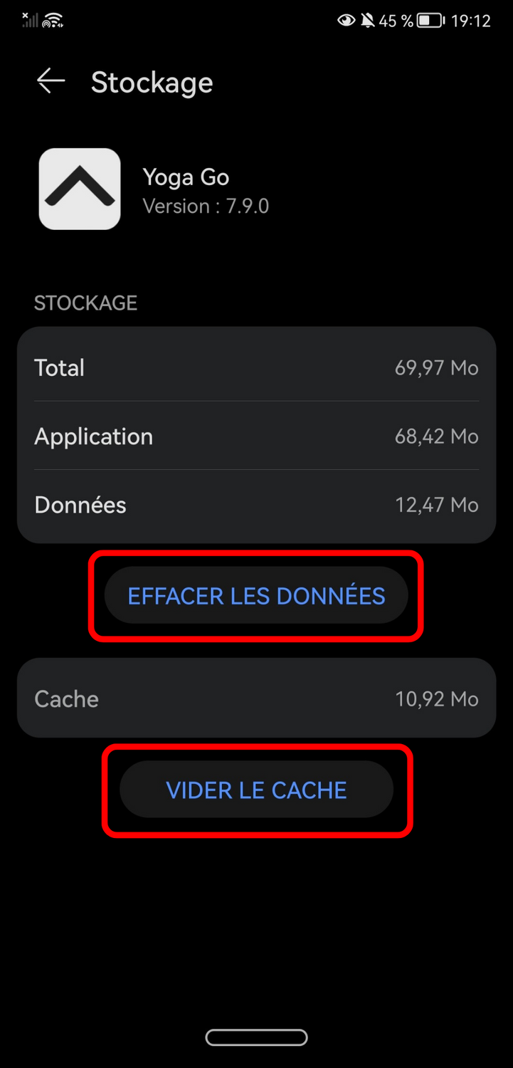 3. Appuyez sur “Stockage” > “Vider le cache” > “Effacer les données”.