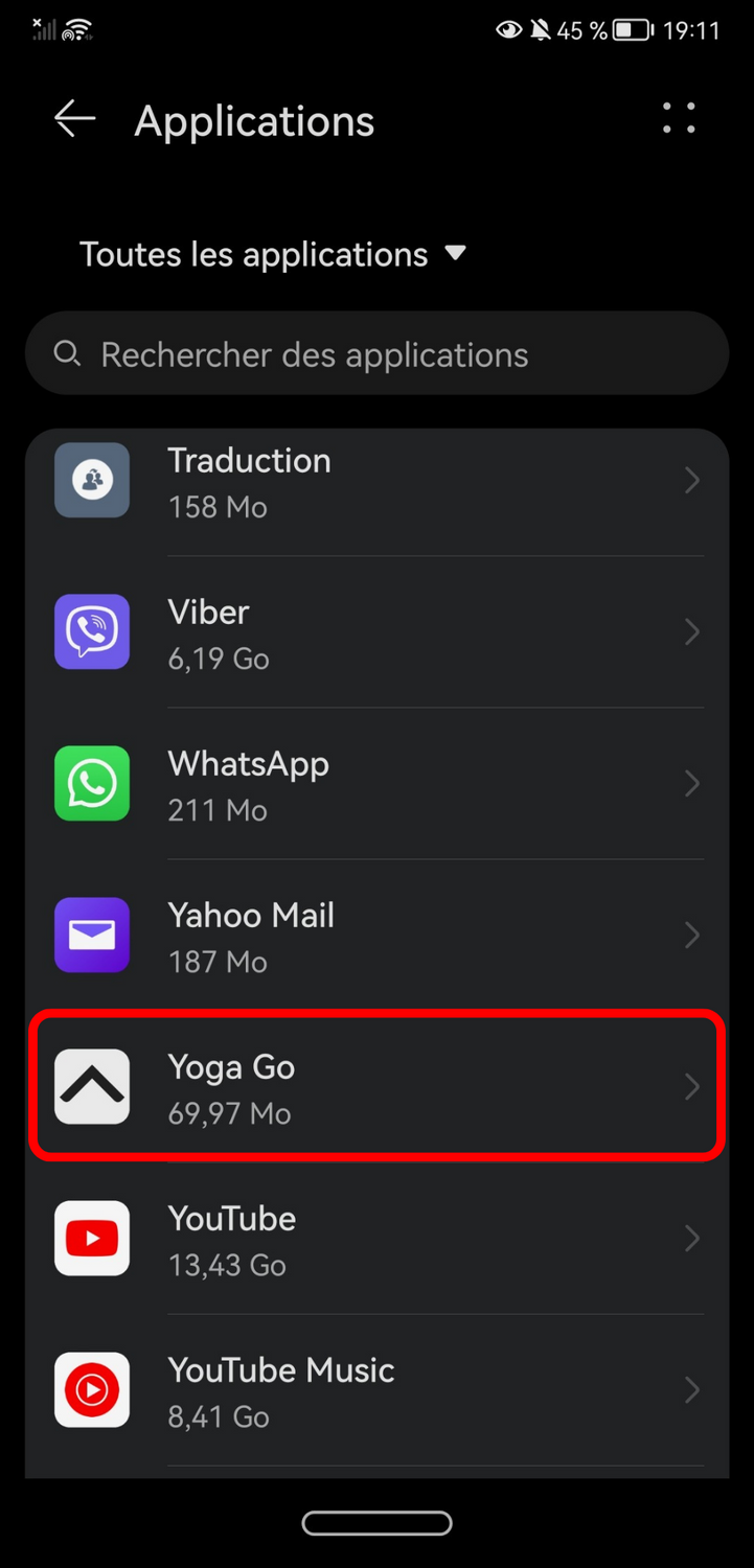 2. Allez dans “Applications” et appuyez sur l'icône de notre application.