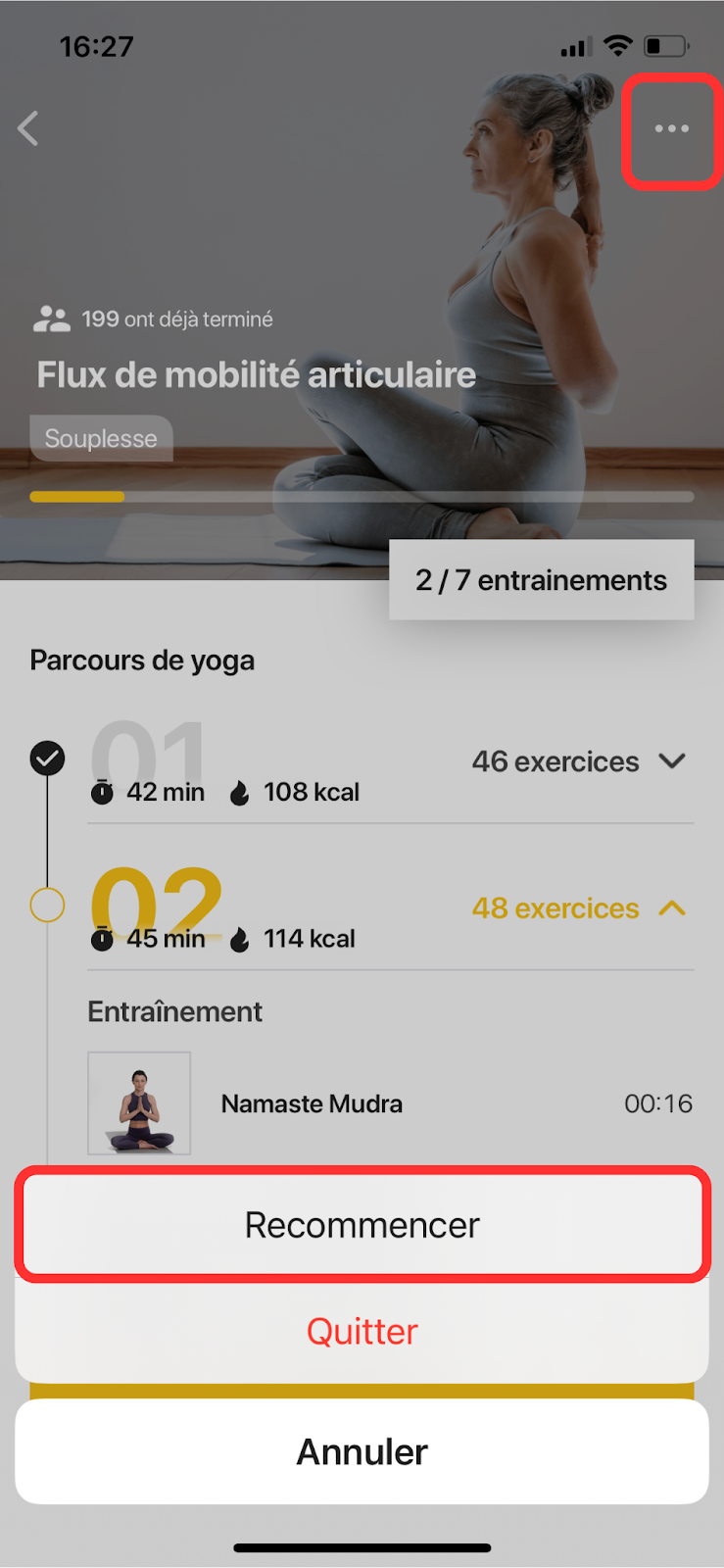 L'application n'offre actuellement pas d'option pour répéter un entraînement particulier, mais nous avons une alternative qui pourrait vous convenir: