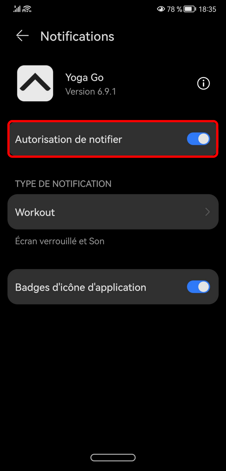 Je souhaite activer/désactiver les notifications de l'application.