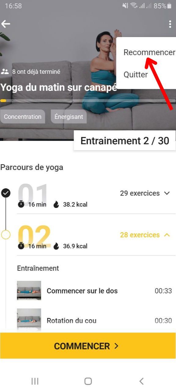 L'application n'offre actuellement pas d'option pour répéter un entraînement particulier, mais nous avons une alternative qui pourrait vous convenir: