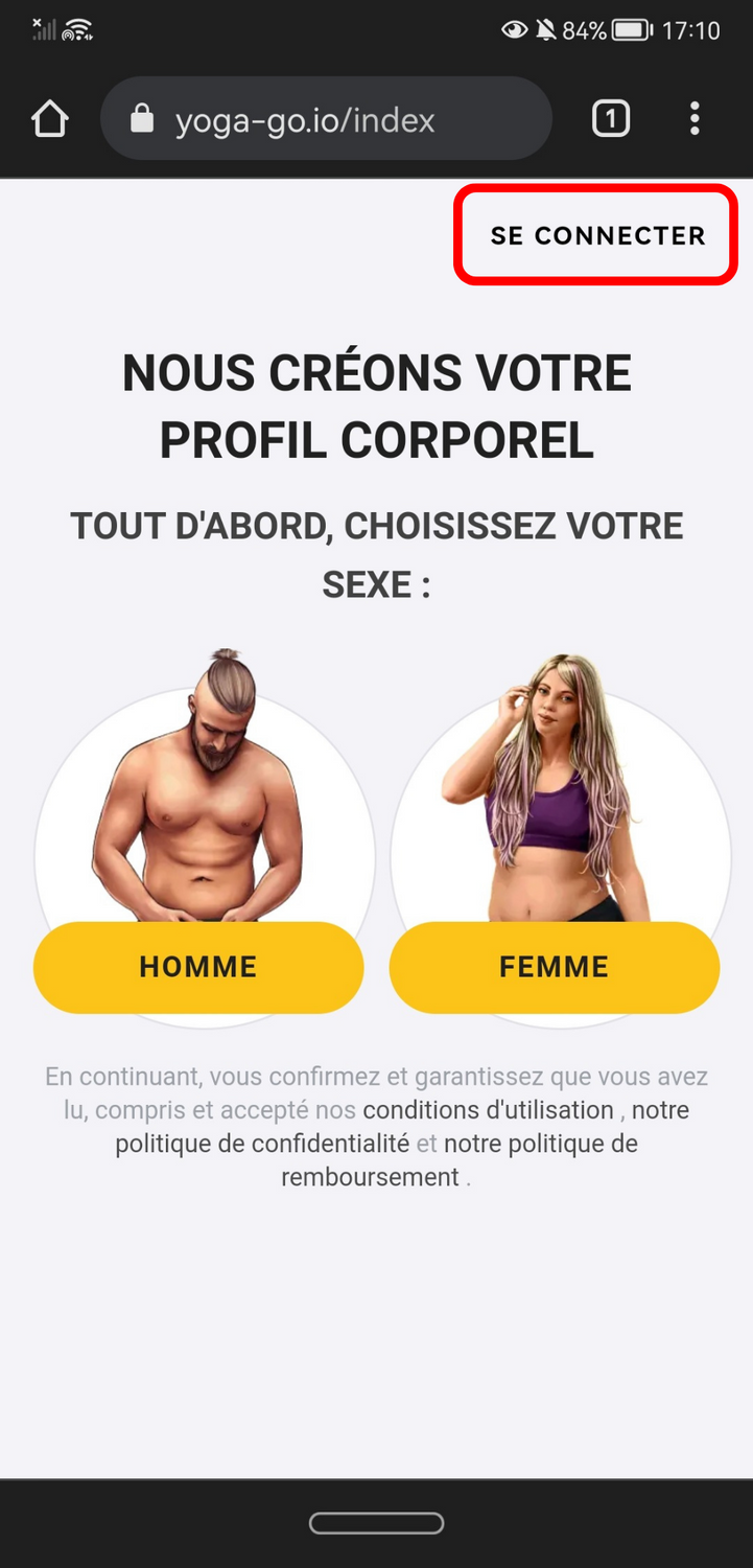 Entrez les informations de votre compte et appuyez sur le bouton «Se Connecter» comme indiqué ci-dessous: