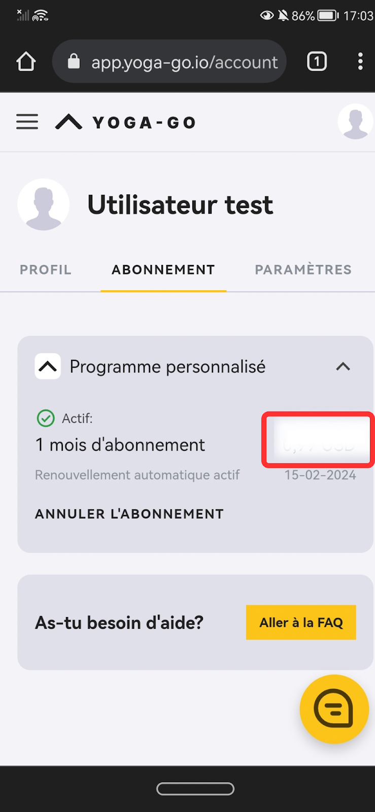 Appuyez ensuite sur la section “Abonnement “ et vous y trouverez les informations sur votre plan d'abonnement actuel:
